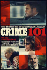 Synopsis: Set against the sun-bleached grit of Los Angeles, Crime 101 weaves the tale of an elusive jewel thief (Chris Hemsworth) whose string of heists along the 101 freeway have mystified police. When he eyes the score of a lifetime, his path crosses that of a disillusioned insurance broker (Halle Berry) who is facing her own crossroads. Convinced he has found a pattern, a relentless detective (Mark Ruffalo) is closing in, raising the stakes even higher. As the heist approaches, the line between hunter and hunted begins to blur, and all three are faced with life-defining choices–and the realization that there can be no turning back. Adapted from Don Winslow’s acclaimed novella of the same name, the film is written and directed by Bart Layton (American Animals, The Imposter). Barry Keoghan, Monica Barbaro, Corey Hawkins, Jennifer Jason Leigh, and Nick Nolte round out the cast.