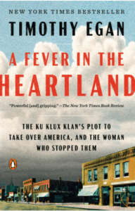 For the month of August, we are reading A Fever in the Heartland, by Timothy Egan. This is a historical thriller by the Pulitzer and National Book Award-winning author that tells the riveting story of the Klan’s rise to power in the 1920’s, the cunning con man who drove that rise, and the woman who stopped them. We always welcome new members! Join every 4th Thursday of the month or only on occasion. Food and drink can be purchased at the restaurant. There’s always good fellowship. No RSVP needed, but feel free to contact Sue at sue.siewert55@gmail.com or 414-813-0091.